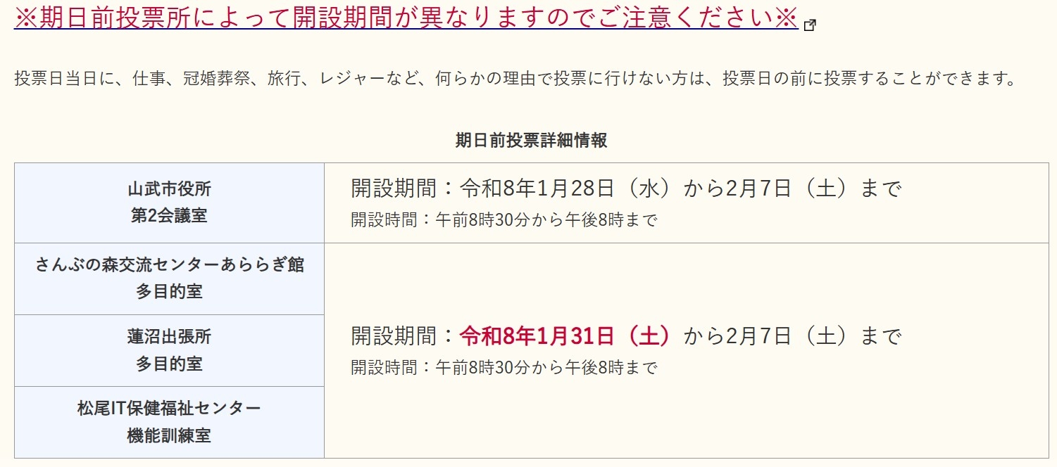 - 【衆議院・期日前投票】 蓮沼出張所1/31~2/7(8:30~20:00)➡